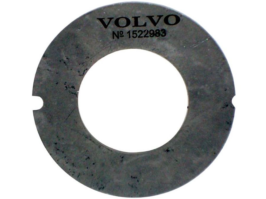 Arruela fabricada em aço, destinada ao sistema de diferencial dos caminhões Volvo modelos N10, NL10, N12 e B-58. Esta peça é essencial para garantir o correto posicionamento e funcionamento dos componentes internos do diferencial, contribuindo para a estabilidade e durabilidade do conjunto.