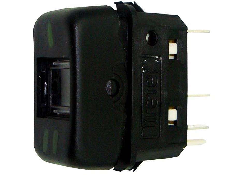 Interruptor de tecla para controle do ar de ventilação, operando em 12V, na cor preta. Compatível com veículos comerciais da linha LN710, este componente é essencial para o acionamento do sistema de ventilação interna.