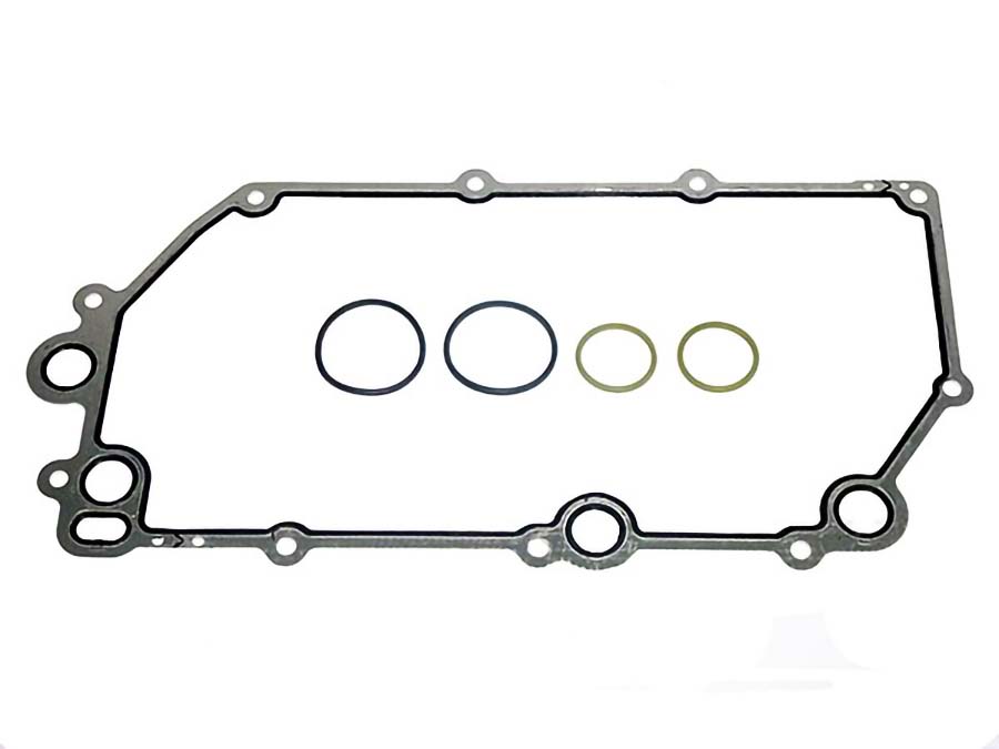 Junta de radiador de óleo em chapa metálica com orings, projetada para vedação eficiente no sistema de resfriamento de óleo dos motores das linhas Scania Série 4 e PGR fabricados entre 2008 e 2012. Esta peça assegura a integridade do sistema, evitando vazamentos e garantindo o funcionamento adequado do radiador de óleo.