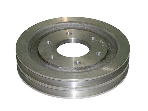 Polia fabricada em alumínio com duas canaletas, projetada para acionar a bomba d'água em motores da família OM447. Esta peça é compatível com sistemas de transmissão por correia que utilizam duas canaletas, garantindo o funcionamento adequado do sistema de arrefecimento.