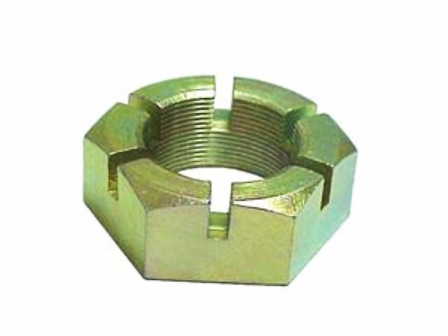 Porca castelo com dimensões 24x37x56 mm, indicada para uso em manga de eixo de veículos comerciais de grande porte. Compatível com uma ampla gama de caminhões médios, pesados e ônibus, garantindo fixação segura e adequada para o sistema de suspensão e transmissão.